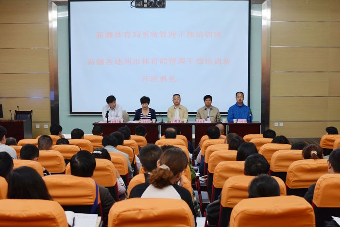 本网讯5月13日,由国家体育总局人事司对口援助、新疆自治区体育局主办、我院承办的新疆体育局系统管理干部培训班、新疆各地州市体育局管理干部培训班在我院同时开班。我院院长周里、新疆自治区体育局人事处处长龙建贵出席开班典礼并讲话。来自新疆体育局系统、各地州体育局的79名管理干部也一同参加了开班仪式。开班典礼由我院继续教育学院院长安儒亮主持。