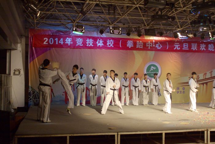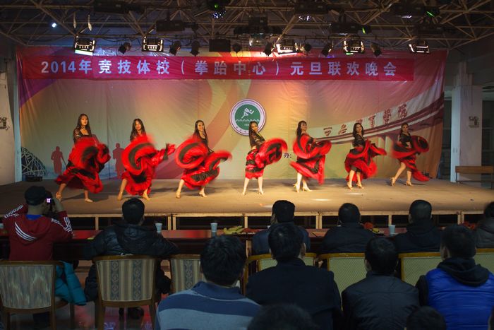 晚会在教职工欢乐优美的舞蹈《大摆裙》和小合唱《军港之夜》中开场,温馨感人。跆拳道队的小品《快与慢》、《跆拳串烧》为师生带来了视听震撼,拳击队任强教练独唱《无所谓》、中长跑队教练的歌曲《Every one is NO1》及队员的原创小品《放飞理想》让大家深深体会到了师生的多才多艺。晚会高潮的抢凳子游戏由餐厅职工进行了锣鼓伴奏,诙谐幽默的搞笑小品《王麻子的袜业》、妙趣横生的舞蹈《不要不要》和《火花》等让大家拍案叫绝。蹦床队表演的《花球啦啦操》让观众眼前一亮。晚会气氛热烈活跃,师生将以晚会作为辞旧迎新的起点,朝着新的目标奋勇前行,努力拼搏。