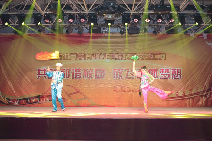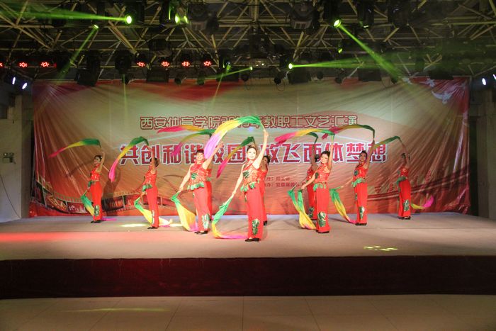 本网讯为迎接新年和学院建院60周年,增强教职工的凝聚力,促进和谐校园建设,丰富教职工的文化生活,12月30日晚7时,以“共创和谐校园 放飞西体梦想”为主题的我院教职工文艺汇演在大学生活动中心拉开帷幕。全院教职员工齐聚一堂,欢度元旦,迎接新春,气氛欢乐祥和。