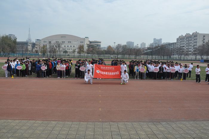 本网讯为丰富校园文化生活,11月26日,社会体育与休闲体育系党总支、工会分会、学生分会在第一田径场联合举办了以“和谐 阳光 健康 快乐”为主题的趣味运动会。