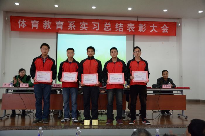 11月27日的实习总结暨表彰大会上,该系副主任马海涛和王鑫分别针对体育教育专业和特殊教育专业的实习情况进行了总结,体育教育系党总支书记屈崇斌宣布了实习优秀集体和个人名单,教务处处长刘新民、体育教育系主任周家颖等分别为获得表彰的24支优秀实习队和104名优秀实习生、实习队长代表颁发了证书和奖品,并为实习指导教师代表颁发了纪念品。
