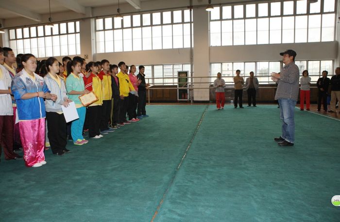 武术系主任马文国与队员们讲话