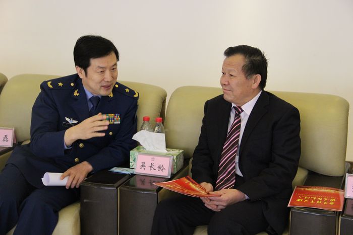 本网讯10月25日,我院党委书记吴长龄作为特邀嘉宾参加了空军工程大学举办的“聚焦强军目标、锻造红色传人”体育运动会开幕式。开幕式举办前,吴长龄书记与空军工程大学张磊政委就继续深化两校间关于“红色传人培育工程”的合作交换了意见。