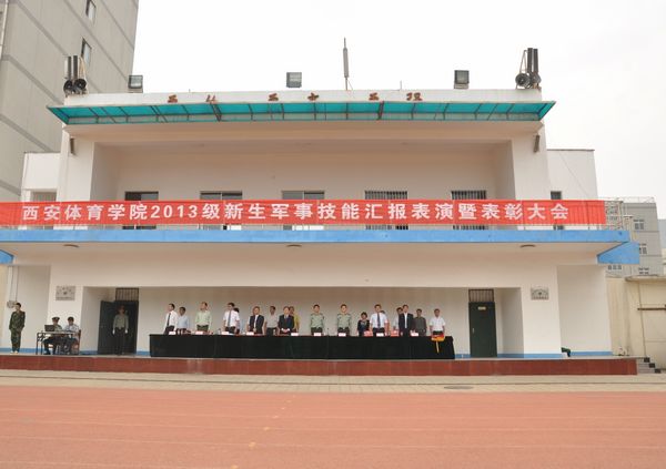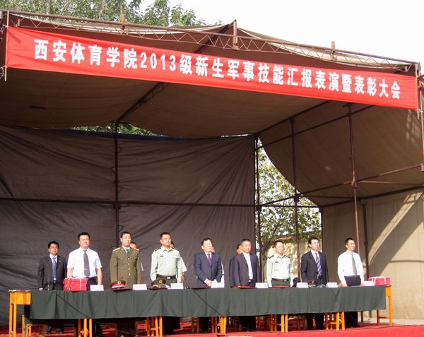 本网讯 9月30日,我院2013级军训汇报表演暨表彰大会分别在沣峪口校区及校本部第一田径场隆重举行。党委书记吴长龄、院长周里、党委副书记朱元利、苏义民、副院长雷新声、党委委员刘新平、陈彦与相关部门负责人,承训部队代表及各系负责人参加了大会。