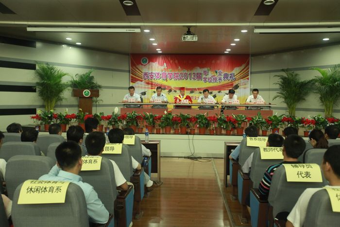 党委书记吴长龄热情洋溢的讲话将毕业典礼推向高潮。吴书记代表学院党政领导和全体师生,向顺利完成学业的2013届毕业生表示热烈的祝贺,向为学生健康成长倾注心血和汗水的教师们表示诚挚的感谢。吴书记以我院校友、国家体育总局副局长杨树安和陕西著名导演张艺谋为例,勉励同学们心怀至爱,认真做事。他还与同学们分享了自己多年体育管理工作的经验,鼓励同学们为国家体育事业的振兴和实现伟大的中国梦而展示自己的才华,贡献自己的力量。最后,吴书记用“莫愁前路无知己,天下谁人不识君”“待到山花烂漫时,她在丛中笑”两句诗祝愿同学们展翅高飞、鹏程万里,拥有精彩的人生和美好的未来!