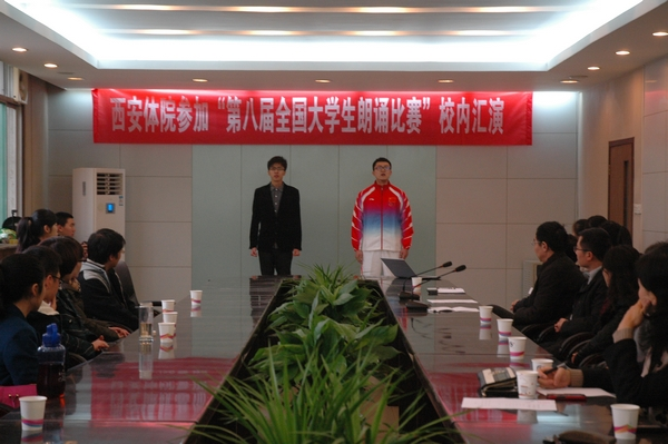 本网讯 为使我院学子以良好的精神面貌参加在北京举行的“第八届全国大学生朗诵比赛”,日前,团委在行政楼大会议室举行“第八届全国大学生朗诵比赛”校内汇演。党委副书记朱元利,学工部及体育传媒系负责人、播音教研室相关教师出席观看了汇报表演。