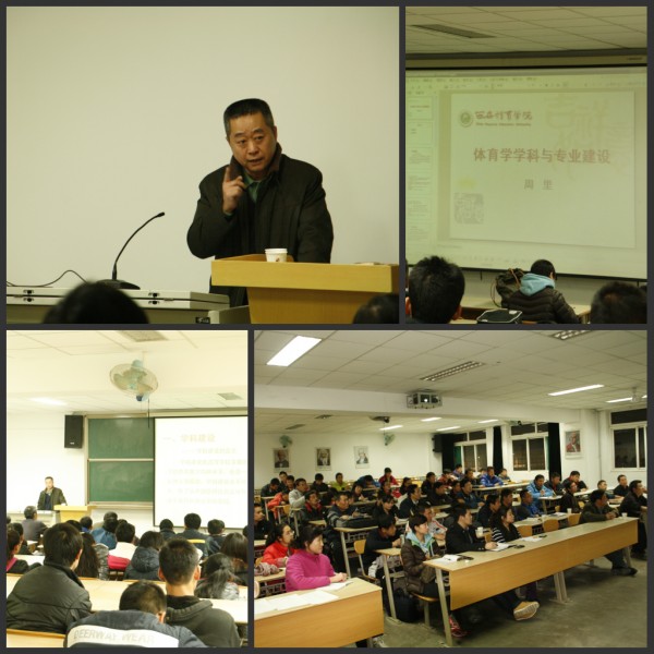 本网讯为进一步加强学科建设和专业建设,提升人才培养质量,推进 “教、科、训”上水平,应运动训练系邀请,我院副院长周里教授近日在教学楼301教室作了题为“体育学学科建设与专业建设”的专题报告,运动训练系全体教师以及体育教育训练学专业的研究生聆听了讲座。