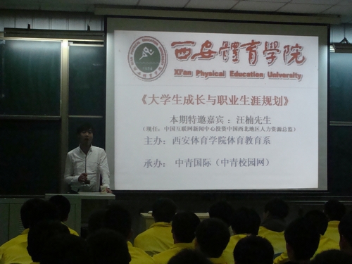 讲座特聘中青国际教育集团资深讲师、中国互联网新闻中心投资中国西北地区人力资源总监王楠担任主讲。讲座紧紧围绕“大一,我的新起点”主题,以对生涯规划的基本认识为中心,以生涯规划的意义为主要线索,以生涯规划的科学方法为要旨,充分分析就业形势,解剖现实问题,使同学们对于自我评估、自我定位,计划与调整兼行并施,目标与现实结合等理念有了新的认识与了解。