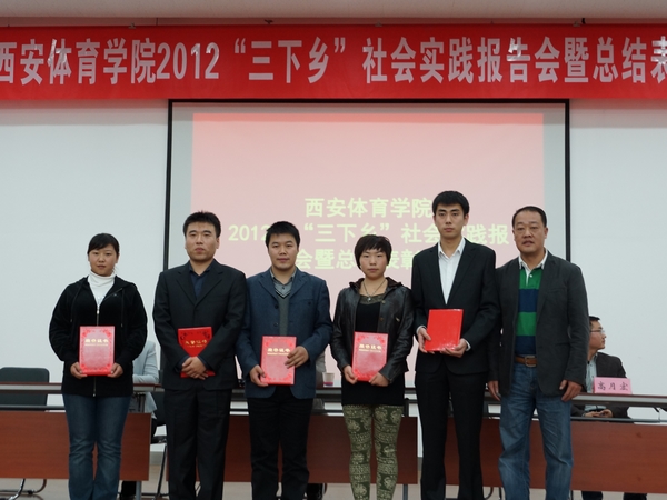 团委副书记高月宏总结了我院2012年“三下乡”社会实践活动工作。本次“三下乡”社会实践活动中,共选派七支服务队分别赴安康、汉中、宝鸡、铜川、延安等地开展社会实践活动,发放《体育法》、《全民健身计划纲要》、《阳光体育科学健身手册》等宣传册15000余份,捐赠体育器材1万多元,大众健身操参与群众达5万余人次,建立大学生社会实践基地13个。在服务期间,西部网、大秦网、腾讯网、安康日报、安康教育台、延安电视台、宝鸡市电视台、铜川市电视台等多家媒体对我院“三下乡”社会实践活动进行了报道,引起了当地群众的广泛关注。