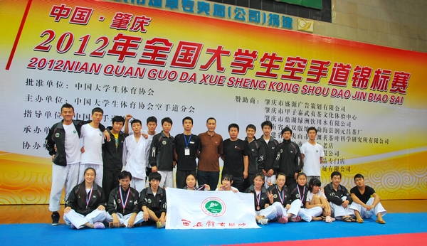 本网讯由中国大学生体育协会空手道分会主办的2012年全国大学生空手道锦标赛日前在广东省肇庆学院举行。全国包括香港大学在内共41所学校432名运动员参加了此次比赛,我院空手道队在领队赵学军、主教练马波的带领下发扬团结协作、勇于拼搏的精神,获得3枚金牌、4枚银牌和2枚铜牌,并获得男子团体和女子团体第三名的优异成绩,我院空手道队还被评为“体育道德风尚奖”代表队。