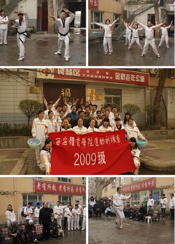 本网讯继3月5日举办了主题为“巩固创建文明校园成果,做新时期雷锋式大学生”活动之后,3月17日上午,运动训练系2009级30余名同学在辅导员老师的带领下,自带清洁工具,来到西安市碑林区民政局文艺路街道办金秋老年公寓进行学雷锋献爱心活动,为老人们擦玻璃,扫地,洗衣服,收拾杂物等。同学们还带去了精心准备的节目,包括歌唱、舞蹈、太极拳、跆拳道、健美操等表演,给老人们带去了欢乐,带去了温暖。