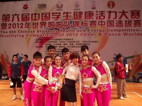 12月20日至22日,第六届中国学生健康活力大赛在广州体育学院举行,由健身轻器械(踏板)、健身轻器械(扇子)、流行街舞、艺术体操、街舞啦啦操组成的我院代表队参加了大赛5个项目的比赛。经过同学们赛前的精心准备与赛场上的出色表现,最终取得了6-10人健身轻器械(扇子)大学A组第一名、五人圈操大学体育院校组第一名、6-10人健身轻器械(踏板)大学A组第二名、艺术体操8人徒手操大学体育院校组第二名、流行街舞大学B组第三名、街舞啦啦规定套路高校规定组第五名的优异成绩。通过这次比赛,还使新选拔的体育艺术系11级运动员接受了挑战,积累了比赛经验,增强了自信心。