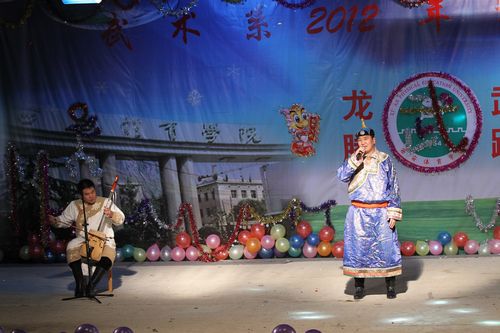 喜庆洋洋的舞狮表演拉开了晚会的序幕。在武术系主任马文国发表了热情洋溢的新年贺词后,节目演出正式开始。