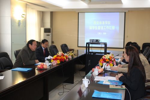 8日上午9时,我院留学生教育工作汇报会在国际交流中心大会议室召开。我院苏明理院长、专家组全体成员出席了会议。苏院长在致辞中对各级领导给予我院留学生管理工作的关心和支持表示感谢,他指出,国际教育合作,尤其是来华留学生工作,一直是西安体院整体工作的重要板块之一,随着我院办学规模的快速发展和办学水平的不断提高,留学生教育工作也将不断迈上新台阶。院国际交流中心雷强主任作了西安体育学院留学生教育管理工作汇报。随后,专家组考察了我院的场馆设施和留学生公寓。专家组成员充分肯定了近年来我院在留学生教育方面所做的工作,并针对我院办学特点提出有关建设性意见,期待我院在留学生规模上能有所扩大。