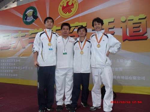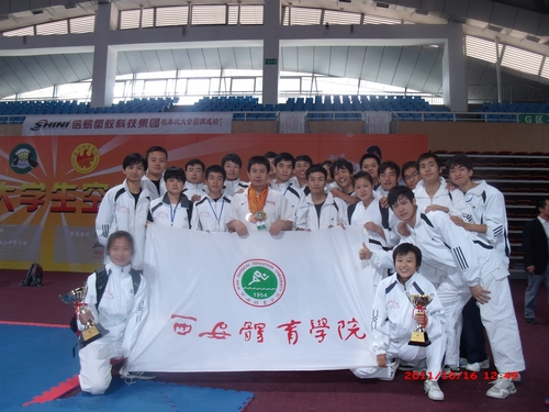 由中国大学生体育协会空手道分会主办的2011年全国大学生空手道锦标赛日前在武汉体育学院举行。我院空手道队在马波教练带领下,经过三天顽强拼搏,最终获得三枚金牌、一枚银牌和六枚铜牌,并获得男子团体第二名和女子团体第三名的优异成绩,实现了西北地区高校空手道队在全国比赛中金牌零的突破,为学院争得了荣誉。