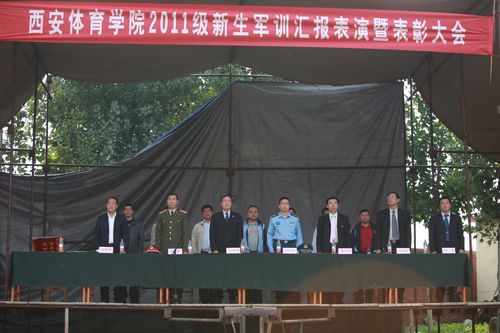 9月21日下午14时,我院2011级学生军训汇报表演暨表彰大会在第一田径场隆重举行。院长苏明理,党委副书记朱元利,副院长权德庆、雷新声,党政办主任陈彦,学工部部长张朝阳及有关部门负责人,承训部队领导等出席了大会。大会由党委副书记朱元利主持。