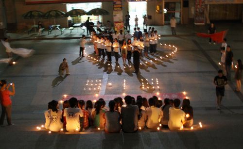 5月12日,我院青年志愿者协会在校园组织举办了“5.12大地震”捐资寄思纪念活动。有关爱心募捐活动在学生食堂西门举办,同学们积极捐款并留言祝福。当日晚八时,在青协志愿者组织下,西体学子携手在4号学生公寓楼下举行烛光寄思活动。同学们用点亮的蜡烛摆出两个相对的心形图案以及“5.12”字样,并以默哀方式表达对逝去生命的追思与祭奠。