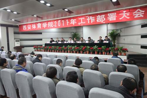 杜平书记在会上代表学院党政对2011年工作从六个方面进行了部署:一是扎实推进两大战略:学科建设战略、人才强校战略;二是精心开好三个会议:科研工作会议、竞训工作会议和新一轮教学改革工作会议;三是认真抓好两项工作:岗位设置管理工作和干部考核管理工作;四是着力实施四大工程:校园建设工程、党建创新工程、德育上台阶工程和安全稳定工程;五是努力深化两项改革:内部机构改革、体制机制改革;六是全面开展一项活动:争创省级“文明校园”活动。
