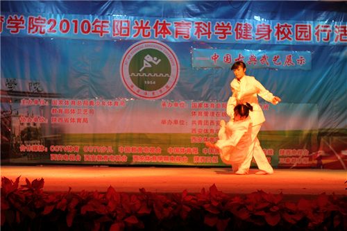 本次中国古典武艺展示是国家体育总局主办的2010年“阳光体育科学健身校园行”活动重要组成部分,活动充分展现了西体学子健康向上的精神风貌和中国古典武艺自强不息、威武不屈的“尚武精神”。活动的成功举办将引导我院广大师生更多地走进阳光、走向健康,同时推动“全国亿万青少年学生阳光体育运动”的广泛、深入开展。