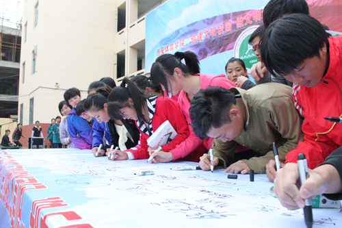 启动仪式结束后,全院师生分别在校本部和沣峪校区举行了“创建文明校园做文明大学生”大型签名活动。