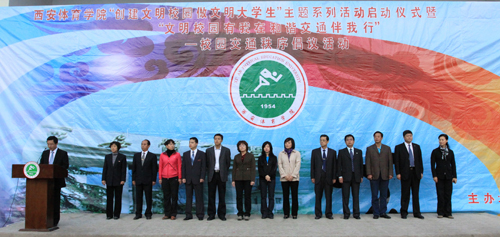 文明校园创建工作是我院贯彻落实党的十七届四中全会精神、第十八次全国及全省高校党建工作会议精神,推进学院党建工作的具体实践,也是我院贯彻落实科学发展观,强化学院内涵建设的具体行动。启动仪式在庄严的国歌声中拉开序幕。学工部、沣峪口校区有关领导分别介绍了本次主题活动概况,动员广大干部、师生员工积极行动起来,以高标准来要求自己,以主人翁的姿态投入到创建省级文明校园的活动中。随后,学生会副主席宣读了《西安体育学院“创建文明校园 做文明大学生”主题系列活动倡议书》,号召全院学生从小事做起,从现在做起,时刻以文明大学生的标准严格要求自己,自觉爱护校园环境,做文明建设的先行者和传播者。