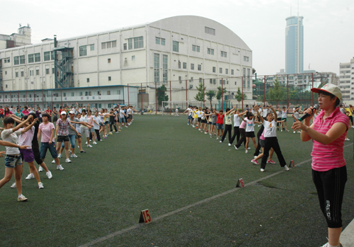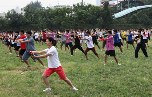 尽管此前只排练了短短几日,队员们表演中展现出的动感、激情与积极向上的人文风采还是赢得了在场观众的阵阵掌声。王建军局长在随后的讲话中对大家的精彩表演表示肯定,对不畏酷暑,刻苦训练的广大师生以及参演小朋友们表示慰问和衷心感谢。他指出,西安体院是建国初就成立的具有优秀传统和良好作风的学校,在西北地区乃至全国享有盛名,通过此次表演活动,将进一步向外界展示西安体院乃至陕西体育的风采。王局长强调,西体承演的开幕式三篇章之“科学健身、欢乐三秦”一章,是开幕式的重中之重,希望大家发挥体育人敢于拼搏,不怕疲劳的精神,继续全力投入排练,并预祝表演取得圆满成功。
