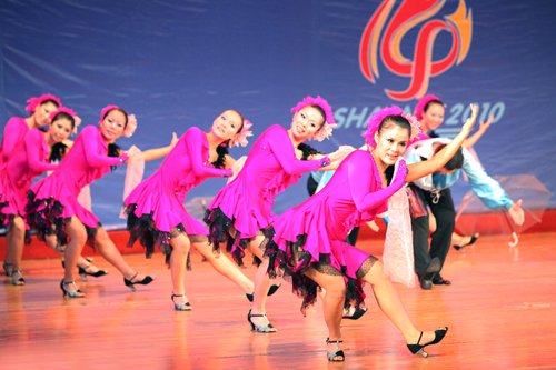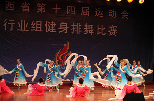 由我院承办的陕西省第十四届省运会健身排舞比赛于9月5日在陕西省妇女儿童活动中心举行。本次比赛共有八个行业单位十支代表队参加。竞赛委员会主任、院长苏明理,竞赛委员会副主任、党委副书记朱元利为优胜单位颁奖。
