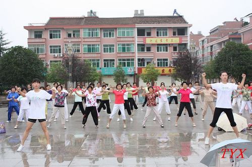 在汉阴的几天里,西体“三下乡”实践队还带着“全民健身进汉阴,男女老少皆上阵”的理念,自行编制了一套中老年健美操,并组建了一支健美操教练队伍。为满足众多晨练爱好者要求,同学们每天清晨6:00至8:00分别在汉阴县体育场、凤凰广场对晨练爱好者进行健美操指导。在富有节奏感的音乐声中,西体学子们、汉阴县群众们认真教、练的神情和健康快乐的笑脸,在这个陕南小城的清晨里,构成了一道清新的风景线。