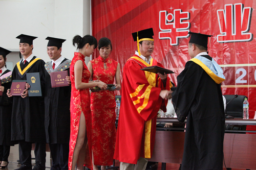 院学位委员会主席、院长苏明理教授在典礼上发表了热情洋溢的讲话。他首先代表院党委、院行政和全院教职工向圆满完成学业的毕业生们表示热烈祝贺,向培养同学们成长成才的老师们致以崇高敬意。苏院长对即将迈入生活新阶段的毕业生们殷切寄语。他说,毕业是一个终点,又是新的起点,希望毕业同学继续保持良好的学习习惯,并尽快完成角色转换,适应新的生活。苏院长并要求毕业生们做到文明离校,安全离校。在欢快的乐曲声中,苏院长为毕业生代表正冠拨苏,授予学士学位。