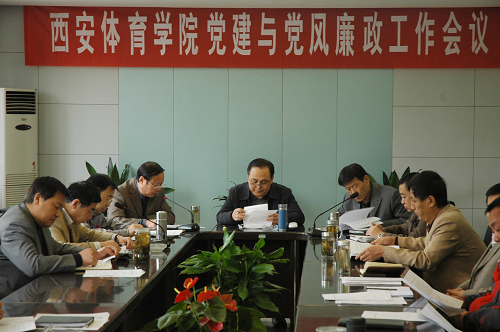 党委副书记、纪委书记苏义民传达了省教工委关于全省高校、体育系统党政工作会议的精神,部署了学院2010年纪检监察工作,重点包括:深化制度建设,推进制度创新,严格制度管理,推动反腐倡廉建设科学化;加强对重点部门的监督力度,制约腐败行为的滋生;加强来信来访制度建设;坚持严格的审计制度;加强自身队伍建设,提高自律水平等。