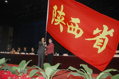 9月9日上午,全国第十一届运动会陕西省代表团成立暨誓师大会在西安国际会议中心隆重举行。我院院长苏明理,党委副书记苏义民,副院长权德庆、雷新声、周里等领导同志应邀出席了会议。陕西省副省长郑小明代表省委省政府向十一运会陕西代表团授旗,省体育局局长李明华代表陕西代表团接旗。郑小明表示,省委省政府将竭尽全力为我省代表团提供支持和保障,希望运动健儿们顽强拼搏,勇创佳绩。运动员代表郭文珺和教练员、训练单位代表张根学分别发言,决心以实际行动向三秦父老交上一份满意答卷。