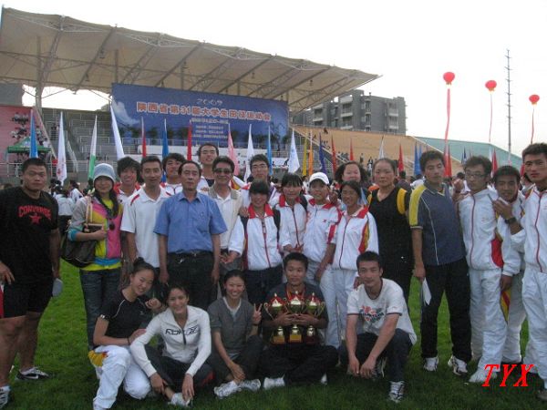 在日前结束的陕西省第三十一届大学生田径运动会上,我院代表队在领队田径教研室主任韩敬及教练许崇高、赵清波、刘占峰、郁成刚、马文新带领下获得男子团体总分、女子团体总分、男女团体总分第一名的成绩,并获得了精神文明奖。