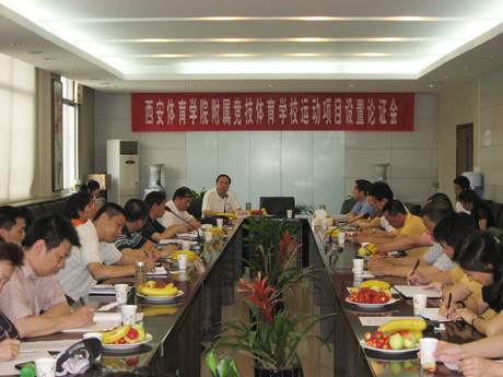 5月21日下午,我院竞校运动项目设置论证会在行政楼二楼大会议室召开。陕西省体育局副局长姚金荣、竞技体育处处长董利、各项目运动管理中心主任,西安市体育局副局长张桂瑛、竞技体育处处长薛世清和我院院长苏明理及各相关系部、教研室主要负责人、竞校科研顾问等30余人参加了会议。苏院长向与会人员详细介绍了我院附属竞技体育学校项目设置情况并与参会代表就我院竞技体育的发展进行了交流。