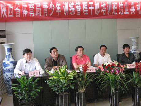 受陕西省体育局委托,由我院承办的第二期陕西省青少年训练管理干部培训班,经过三周的培训学习,顺利结业。5月4日下午,培训班结业典礼在我院行政楼二楼会议室举行,陕西省体育局姚金荣副局长、陕西省体育局科教处程丽处长、我院院长苏明理教授、副院长权德庆教授出席了会议。