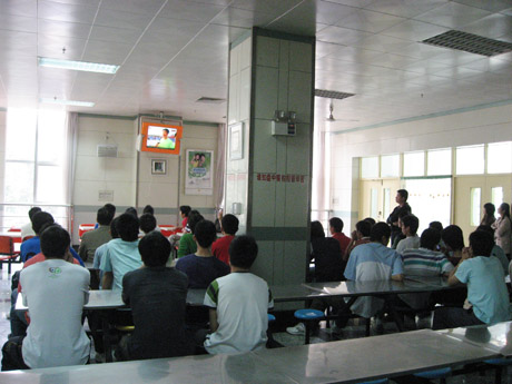 为配合教育部、国家体育总局、共青团中央三部委联合启动的“全国亿万学生阳光体育运动”活动,4月29日上午,我院组织学生在学生餐厅集体收看了三部委在北京举办的大型“全国亿万学生阳光体育运动启动仪式”电视直播节目。