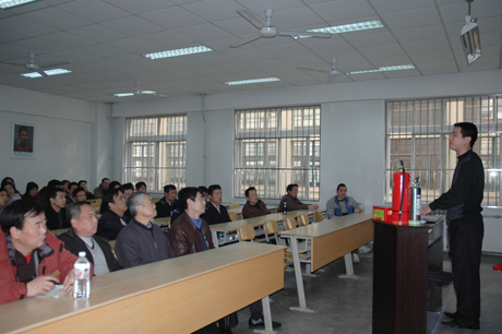 为了加强消防安全工作,杜绝冬季火灾高发期的火患发生,我院于12月20日下午邀请陕西省消防安全培训中心郑老师对我院图书馆、学生公寓、餐饮中心、场馆处等重点部门的消防责任人,各单位消防兼职干部,公寓管理干部及部分工作人员进行了消防知识培训。郑老师就火灾隐患及树立消防意识的重要性、发生火灾时如何处理以及消防器材的使用、维护的基本常识等方面知识进行了讲解,丰富生动的案例讲解、诙谐幽默的语言表达让大家在轻松愉快的氛围中意识到了消防工作的重要性,掌握了防火、灭火的基本技能。