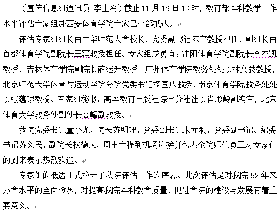 教育部本科教学工作水平评估专家组赴西安体育学院专家陆续抵达