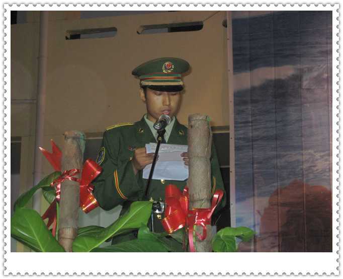 我院2005届毕业生、武警西安支队四大队12中队排长王朝在2006级新生开学典礼暨军训动员大会上的发言.