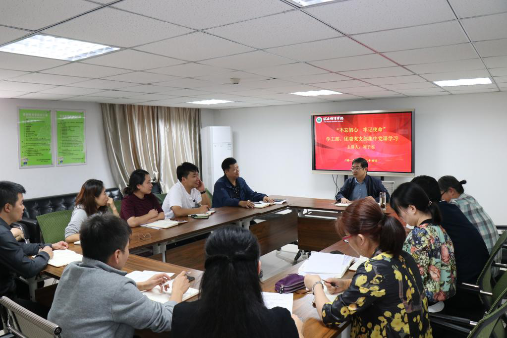 本网讯 9月24日下午4:00,学工部团委党支部开展“不忘初心、牢记使命”主题教育党课活动,党委副书记刘子实以“牢记初心使命、做合格学工干部”为题为全体党员讲了一堂立意鲜明、意义深刻的主题教育党课。主题学习活动由张娟主持,支部全体党员参加学习。