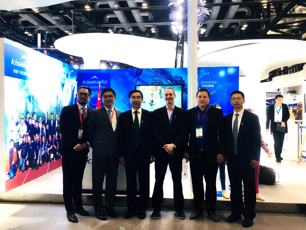 本网讯 10月18日,我校应邀参加由芬兰作为主宾国在北京国家会议中心举办的“2019年国际冬季运动博览会”,并在博览会现场与芬兰凯萨凯里奥体育学院成功签订《国际化教育和体育人才培养战略协议》。校长朱元利在国际交流中心负责人陪同下参加活动和签约仪式。