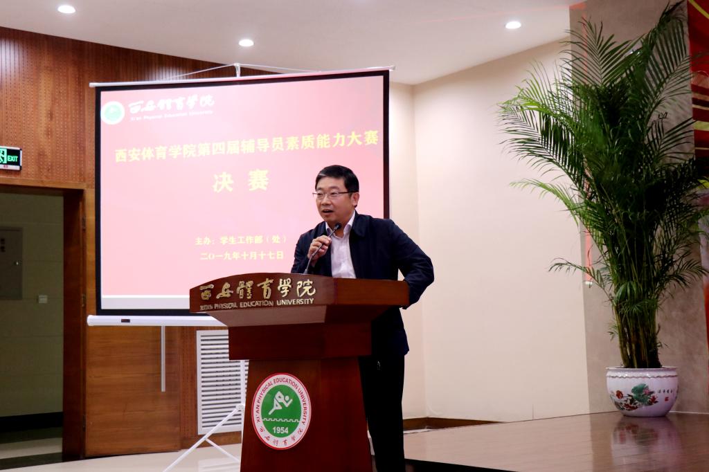 本网讯 为深入学习贯彻习近平新时代中国特色社会主义思想和党的十九大精神,全国教育大会、全国高校思想政治工作会议精神,以赛促学、以赛促建,切实加强新时代辅导员队伍的理论水平、专业素养与职业能力,近日,我校举办了第四届辅导员素质能力大赛(决赛)。陕西省委教育工委学工部部长唐澍、我校党委副书记刘子实、副校长文立新、纪委书记赵军、副校长李富生出席大赛,陕西科技大学学工部部长李晓担任大赛评委及点评嘉宾。学校职能部门、二级学院主要领导,全体专兼职辅导员观摩本次大赛。