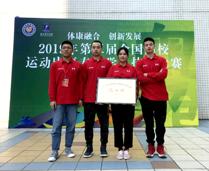 本网讯 11月7日至9日,第三届全国高校运动康复专业学生技能大赛在广州体育学院举行。我校派出了由运动与健康科学学院党委书记刘勇担任领队,翟俊娜、邵丽娜担任指导教师,运动康复专业及运动人体专业8名学生组成的队伍参赛。在为期2天的赛程中,团结协作,全力以赴,最终获得了运动康复组三等奖、体育保健组三等奖的佳绩;2016级运动康复专业学生刘温娟荣获个人三等奖并获得全国助理体育保健师资格,入选全国运动康复产业联盟。