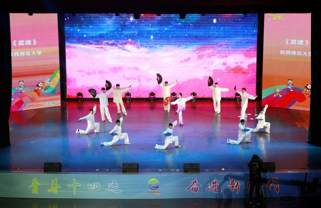 屋外阴雨连绵,馆内热情洋溢。总决赛现场,陕西师范大学、西北大学等14所高校带来了各具特色的作品展演。全省大学生迸发青春的激情为新全运加油,西体艺术馆汇聚青年的呐喊为新时代喝彩。经过现场评委打分和网络投票数据的综合,最终西安体育学院、西北政法大学获得总决赛一等奖,长安大学等4所高校获得二等奖,西安工业大学等8所高校获得三等奖。大赛组委会还颁发了网络微视频大赛作品奖和优秀组织奖。