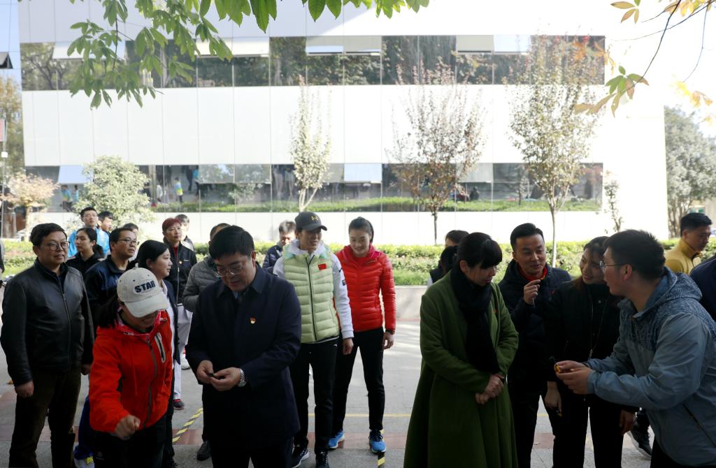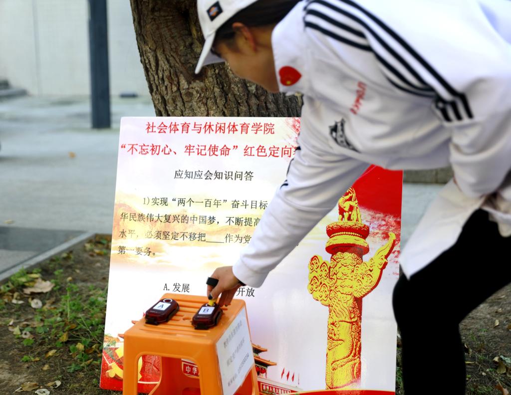 本网讯 11月13日,我校社会体育与休闲体育学院党总支将“不忘初心、牢记使命”主题教育与定向运动相结合,举办了红色定向趣味赛。开幕式上,党委书记黄道峻、纪委书记赵军出席,党委、校长办公室主任张卫国,社会体育与休闲体育学院院长杨建设,副院长李明,原党总支书记吴晓涓等师生参加。社会体育与休闲体育学院党总支书记郭春玲主持本次活动。