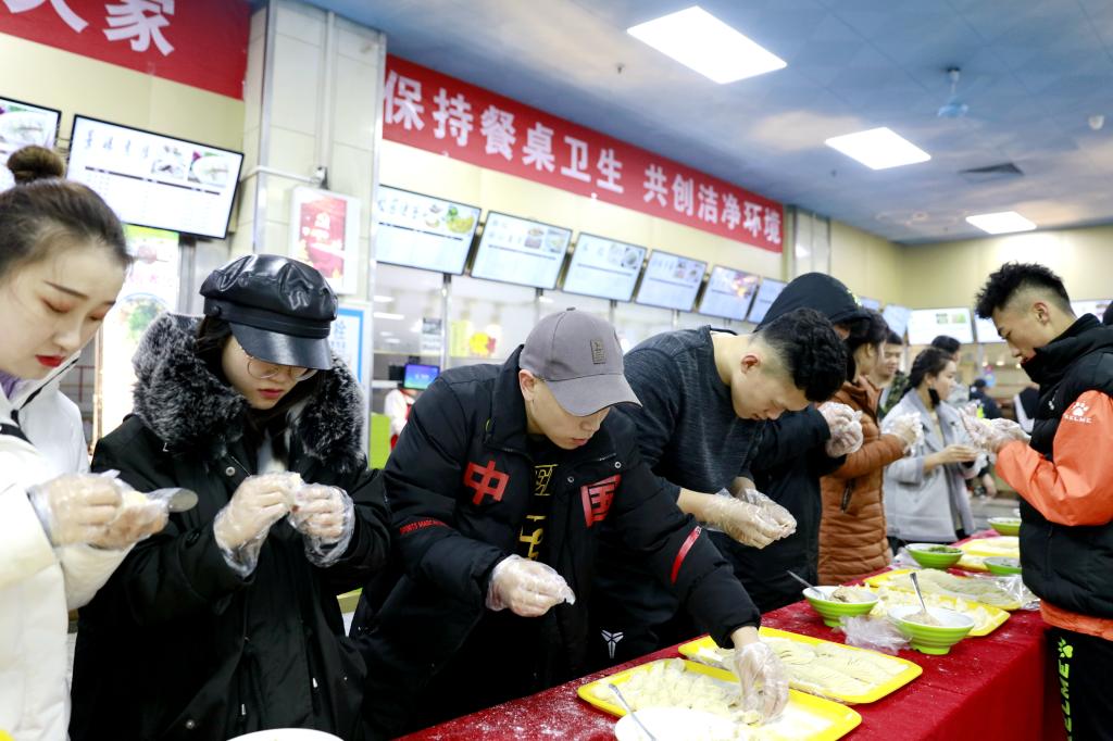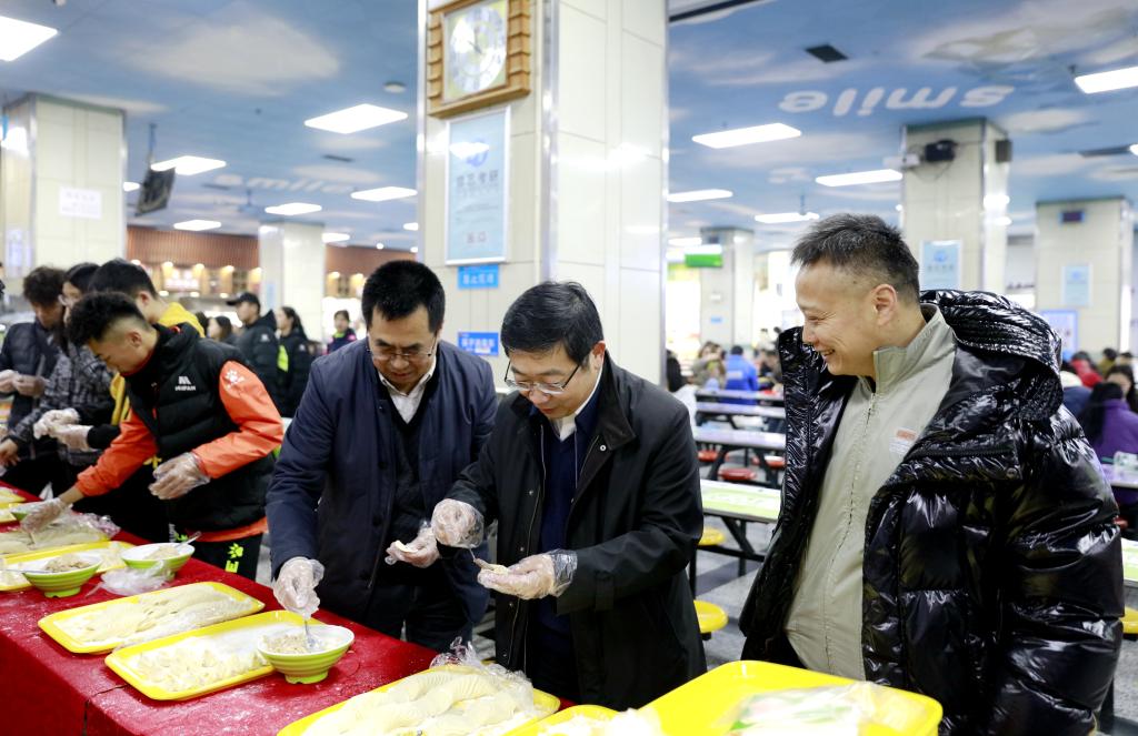 校领导与学生包饺子迎冬至