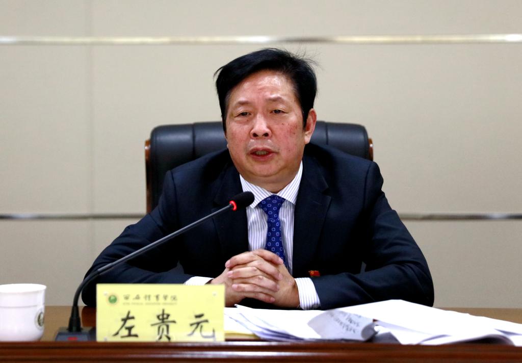 本网讯 1月14日下午,我校召开“不忘初心、牢记使命”主题教育总结大会。会议传达学习了中央和全省“不忘初心、牢记使命”主题教育总结大会精神和要求,全面总结了学校主题教育的开展情况,并对下一步巩固和深化主题教育成果进行安排部署。省委第七巡回指导组组长左贵元出席会议并讲话;副组长王辉强,成员马胜利、殷延卿、续子轩和我校党政领导班子成员出席了会议;全体副处级以上干部、正高职称人员、党外人士代表、离退休教职工代表、师生代表、主题教育办全体人员参加了会议。校党委副书记、校长、主题教育领导小组副组长朱元利主持会议。