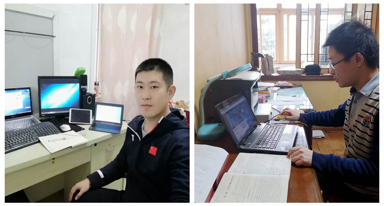 运动与健康科学学院王刚(左)、任超学(中)、张念坤(右)三位老师通过腾讯课堂开展教学