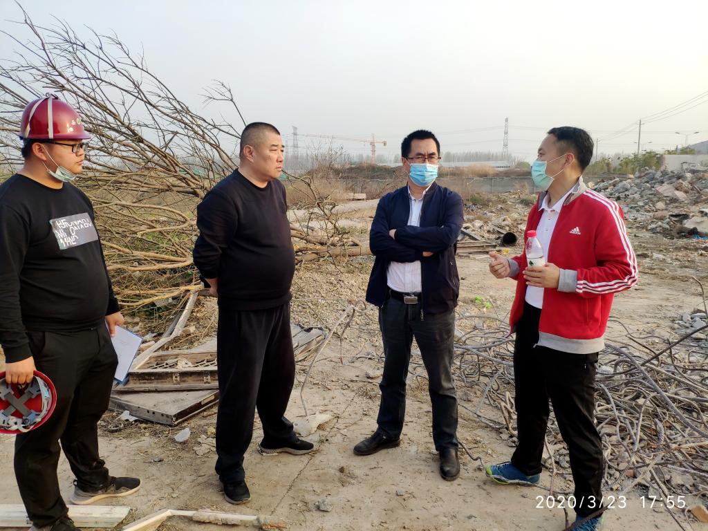 李富生(右一)现场查看企业拆迁工作