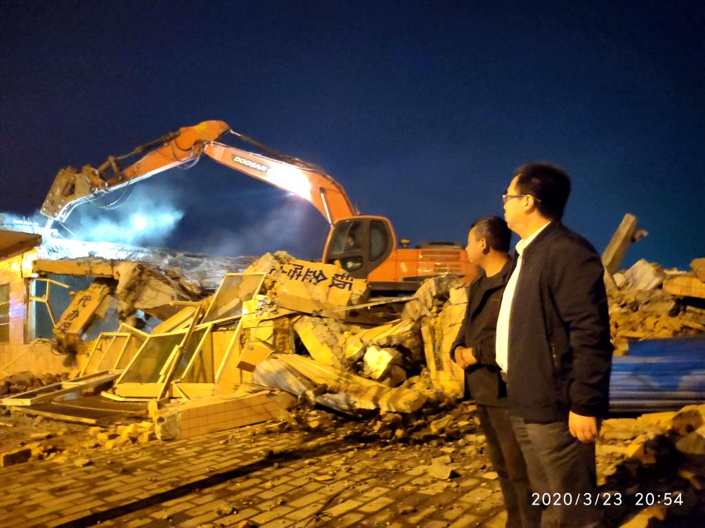 为鼓舞士气,副校长李富生身先士卒,多次带领鄠建办人员亲临拆迁第一线,督办企业拆迁工作,经常盯至晚上10点结束,有效提振了工作士气,显著加快了拆迁进度。3月23日,制约和影响三期工程建设的企业拆迁任务全面完成,有效保障了“一馆四场”项目的顺利建设。