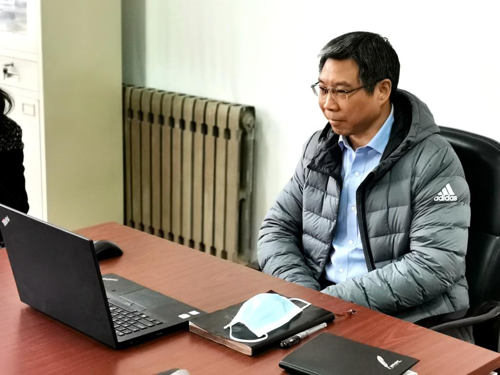 在学院办公室,文立新与教研室主任通过腾讯会议线上视频进行了交流,询问各教研室课程开展情况,对各位老师在疫情防控期间的辛勤工作表示慰问和感谢,要求确保疫情期间线上学习与线下课堂教学质量等质同效,及时汇总各方面意见,共同努力,共克时艰。